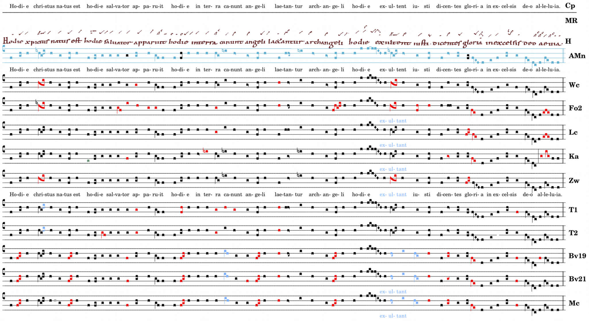 Hodie ! christus natus est : hodie ! salvator apparuit / hodie ! in terra canunt angeli : laetantur archangeli : hodie ! exultent iusti : dicentes / gloria . in ex . celsis . deo alleluia.