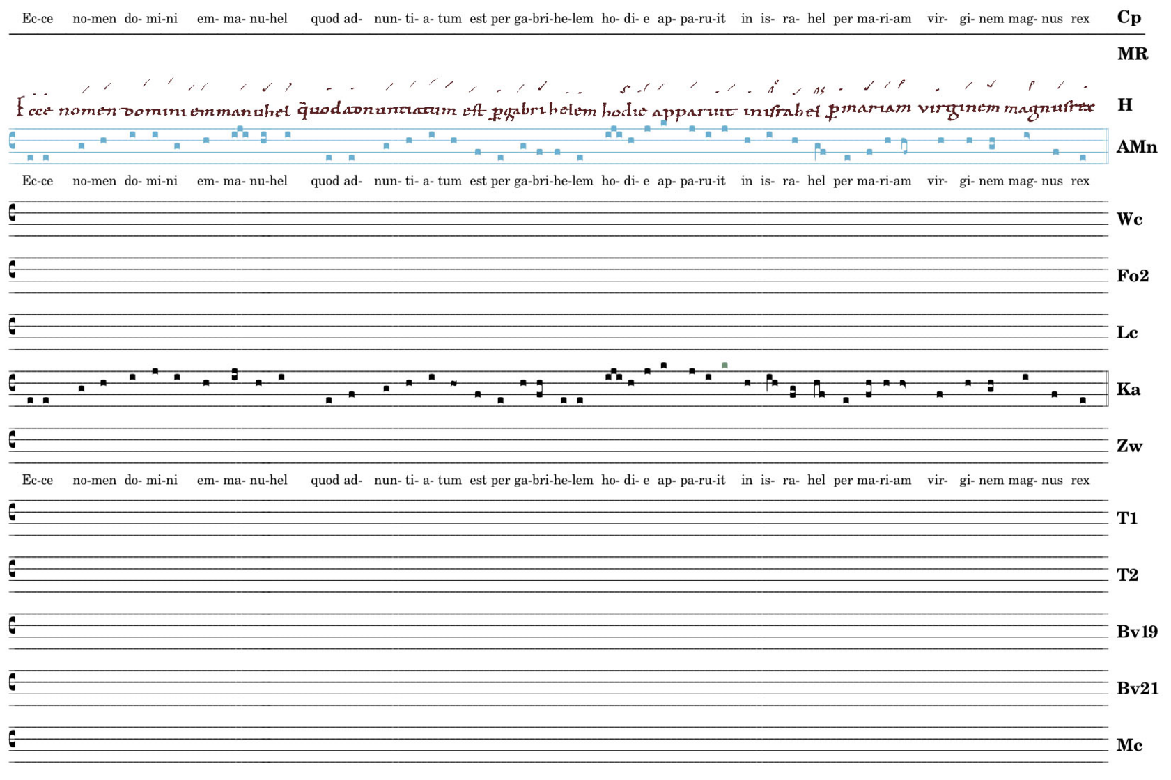 Ecce nomen domini / emmanuel / quod annuntiatum est / per gabrielem / hodie apparuit in israel per mariam / virginem magnus rex.