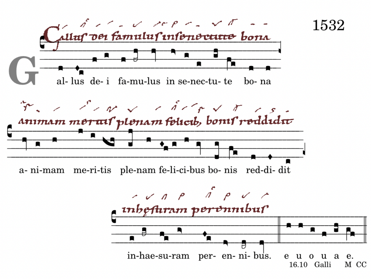 Gallus dei famulus / in senectute bona / animam meritis / plenam felicibus / bonis reddidit / inhaesuram perennibus.