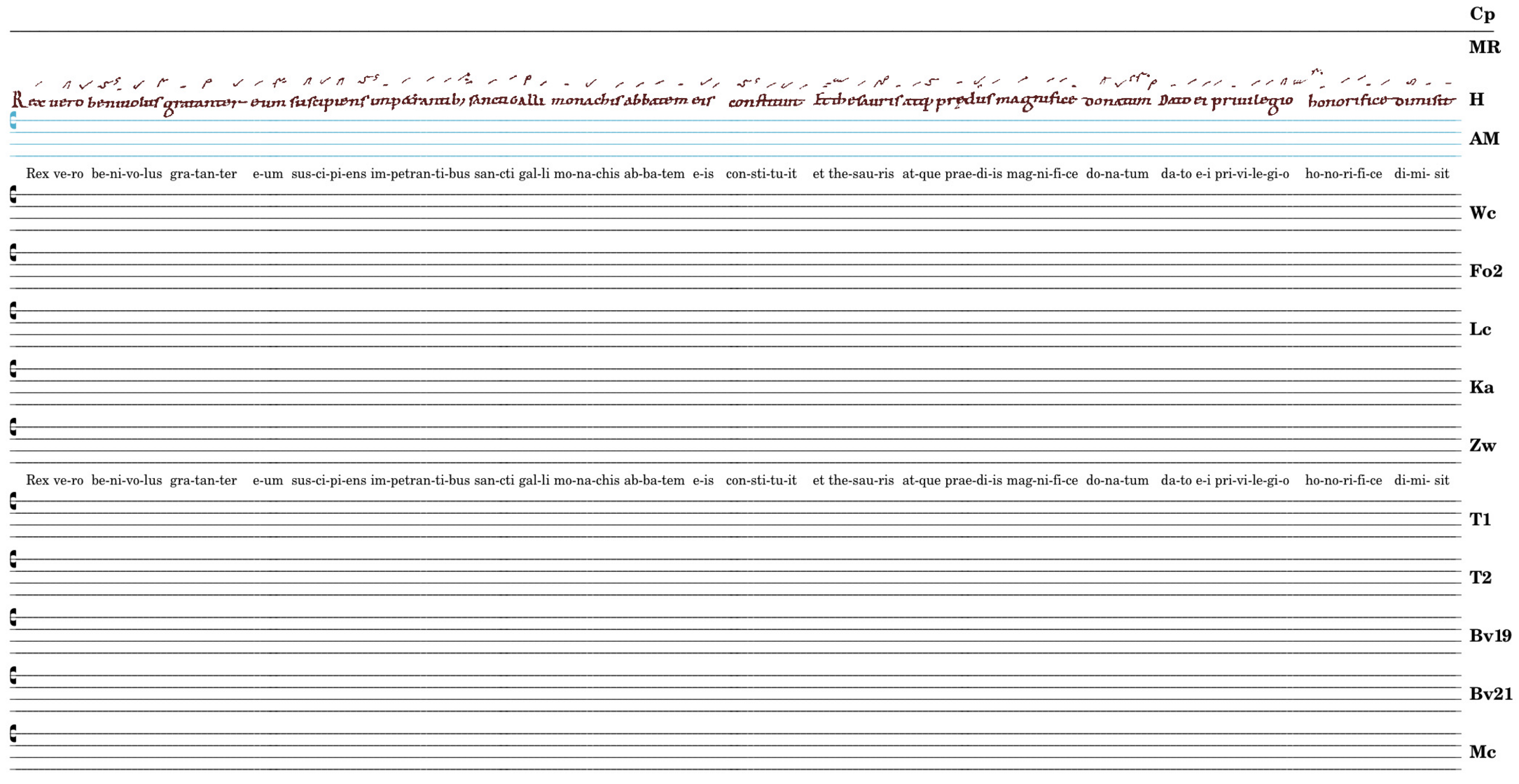 Rex vero benivolus gratanter eum suscipiens / impetrantibus sancti GALLI / monachis abbatem eis constituit / et thesauris atque praediis magnifice donatum / dato ei privilegio honorifice dimisit.