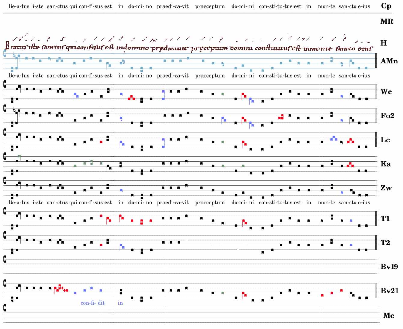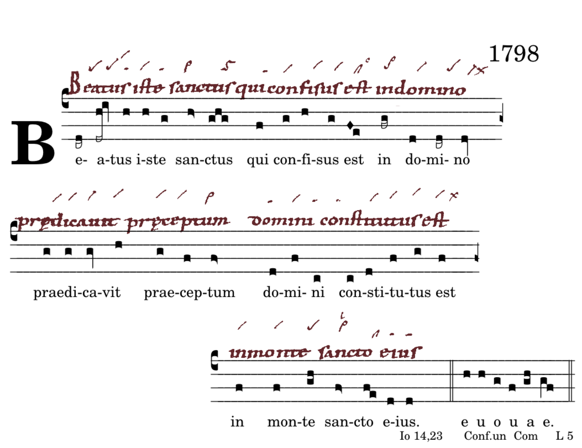 Beátus iste sanctus / qui confisus est in domino / praedicavit praeceptum / domini constitutus est / in monte sancto eius.