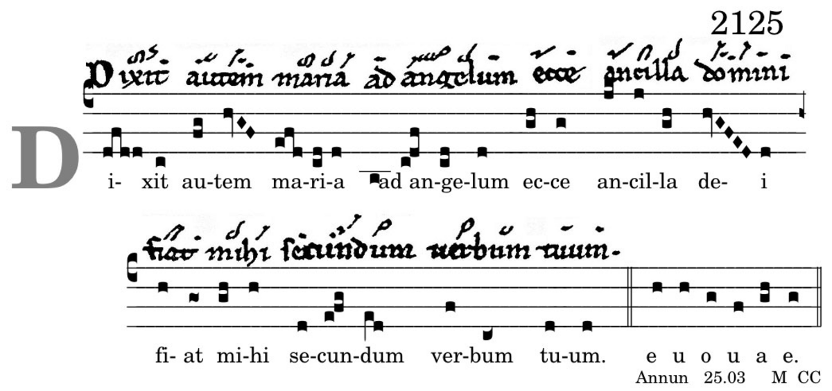 Dixit autem maria / ad angelum / ecce ancilla domini / fiat mihi secundum verbum tuum.