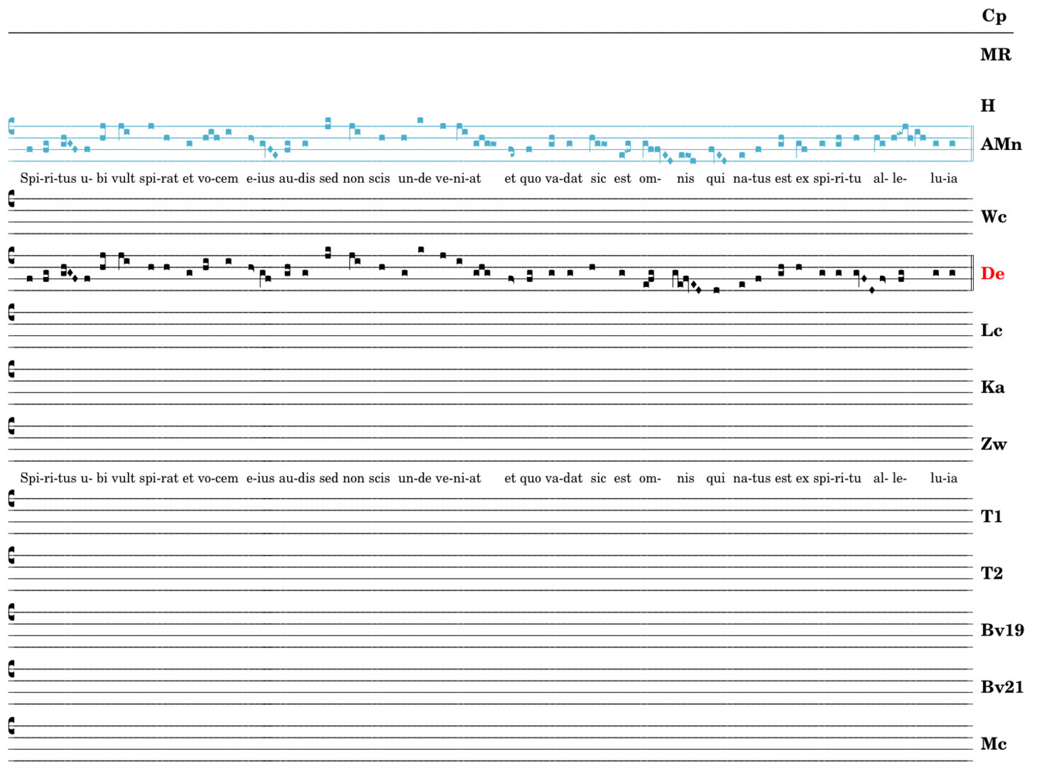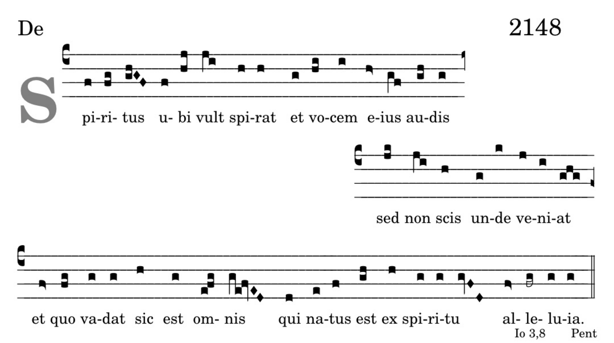 Spiritus ubi vult spirat / et vocem eius audis / sed non scis unde veniat / et quo vadat / sic est omnis / qui natus est ex spiritu / alleluia.