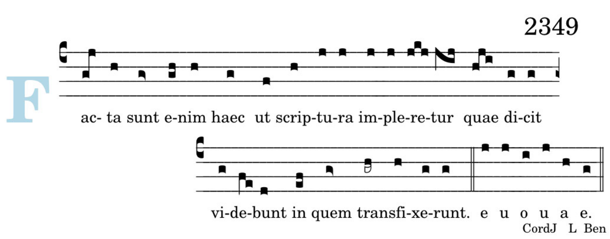 Facta sunt enim haec / ut scriptura impleretur → quae dicit . videbunt / in quem transfixerunt.