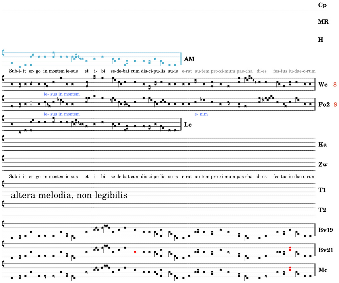 Subiit ergo in montem iesus / et ibi sedebat cum discipulis suis / erat autem proximum pascha / dies festus iudaeorum.