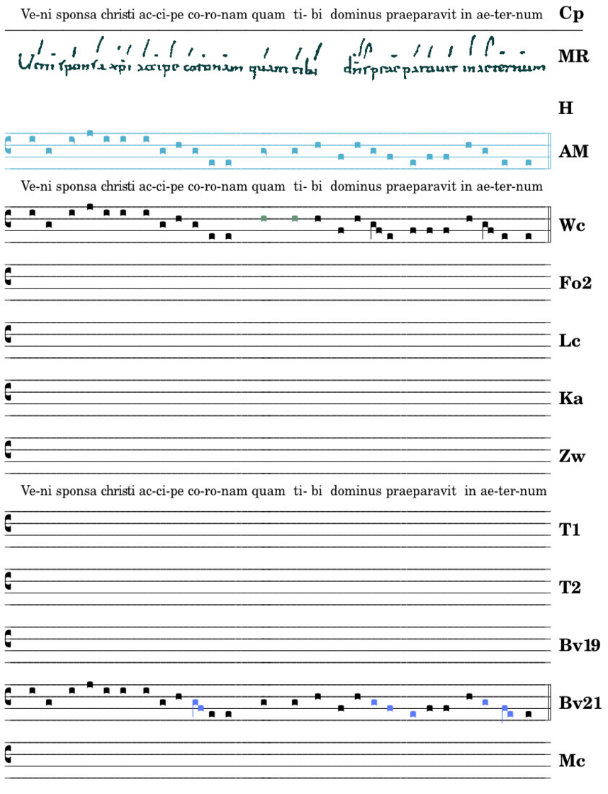 Veni sponsa christi / accipe coronam / quam tibi dominus / praeparavit in aeternum.