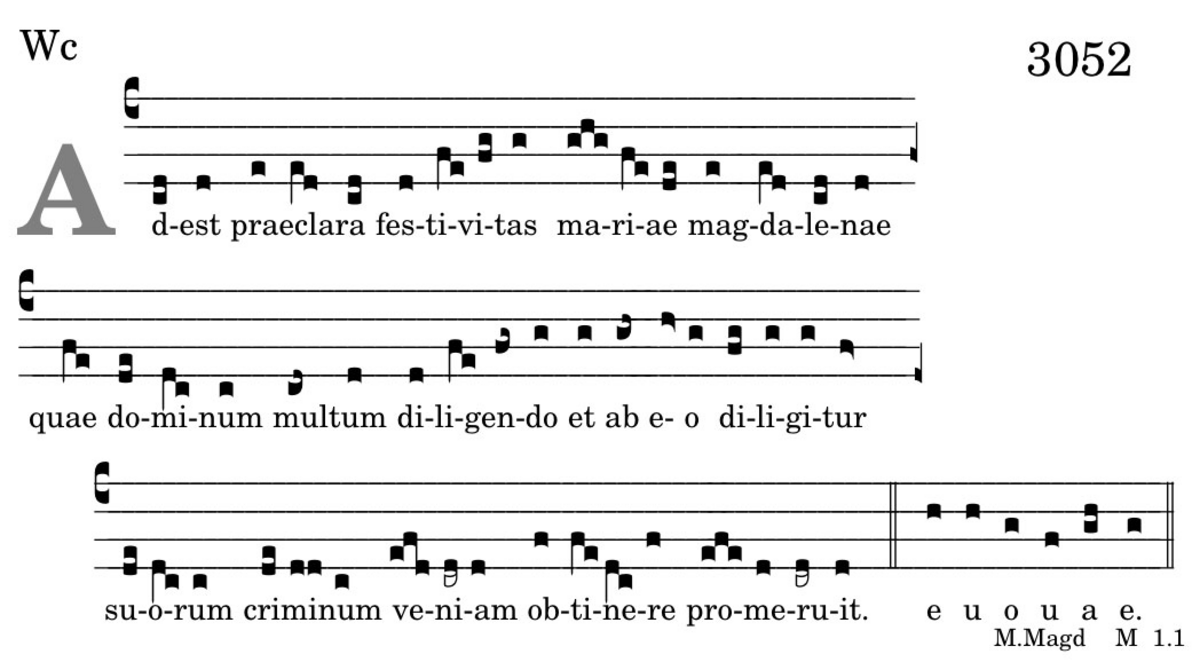 Adest praeclara festivitas mariae magdalenae / quae dominum / multum diligendo et ab eo diligi / et suorum criminum veniam / obtinere promeruit.