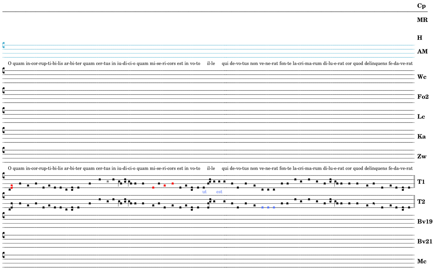 O quam incorruptibilis arbiter / quam certus in iudicio / quam misericors est in voto / ille qui devotus non venerat / fonte lacrimarum diluerat / cor quod delinquens fedaverat.