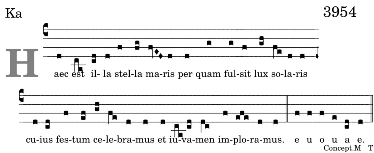 Haec est illa stella maris / per quam fulsit lux solaris / cuius festum celebremus / et iuvamen imploremus.