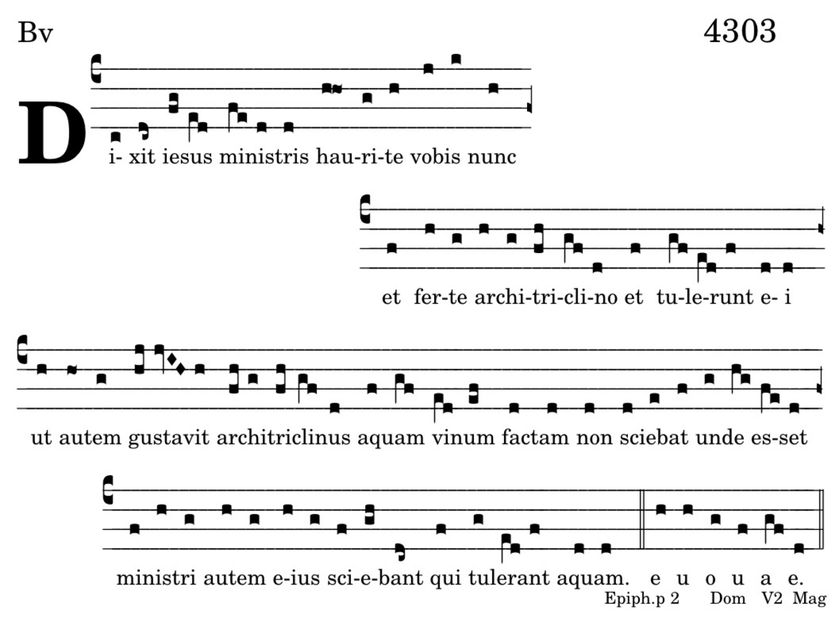 Dixit iesus ministris / haurite vobis nunc / et ferte architriclino / et tulerunt ei / ut autem gustavit architriclinus / aquam vinum factam / non sciebat unde esset / ministri autem eius sciebant / qui tulerant aquam.