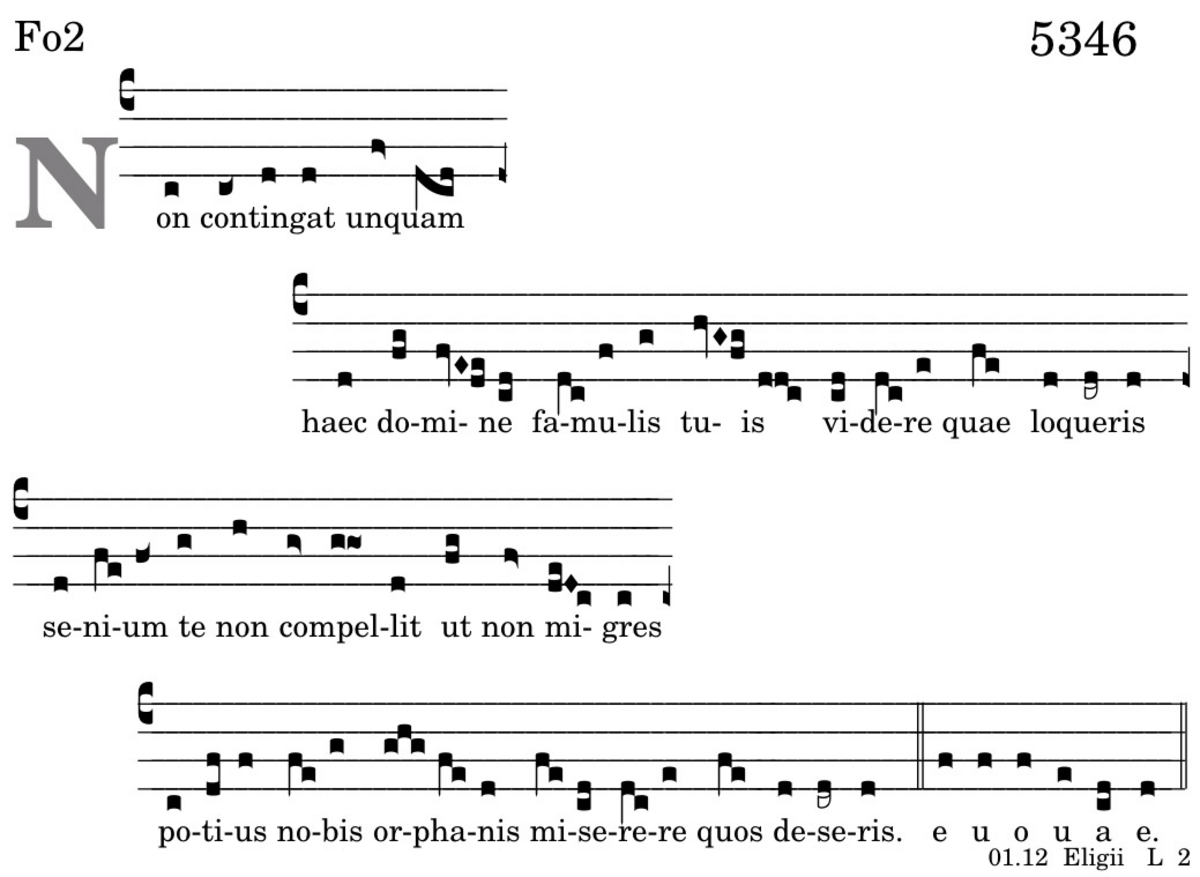 Non contingat unquam / haec domine famulis tuis videre quae loqueris / senium te non compellit / ut non migres potius nobis orphanis miserere quos deseris