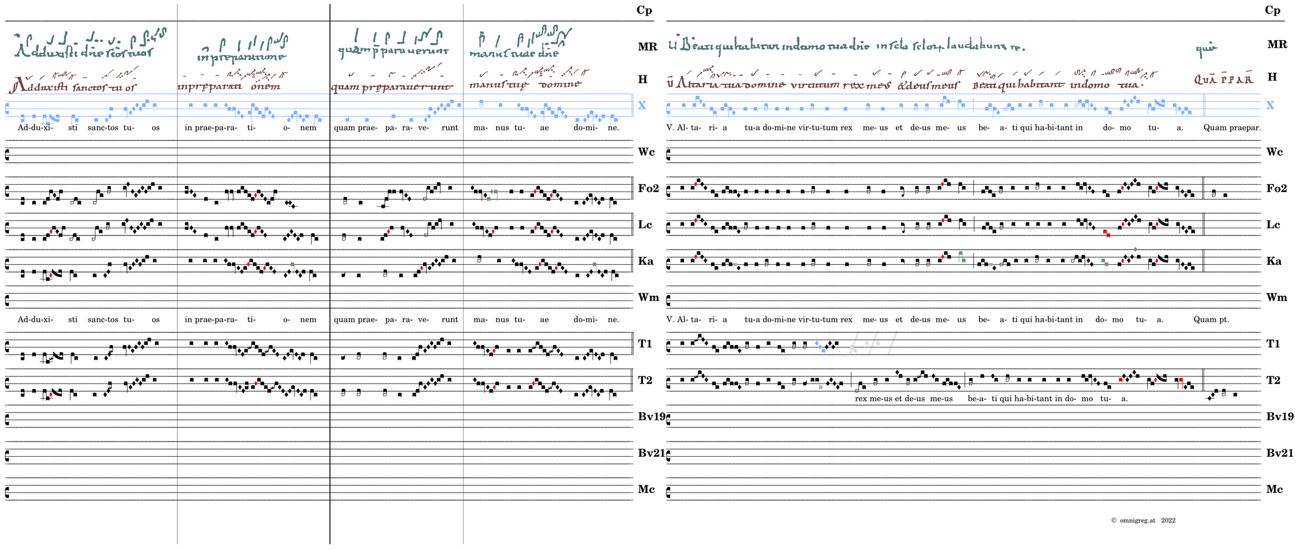 Adduxisti sanctos tuos / in praeparationem / 📍Quam praeparaverunt / manus tuae domine. V. Altaria tua domine virtutum rex meus et deus meus* beati qui habitant in domo tua. (MR) V.Beati qui habitant in domo tua domine in saecula saeculorum laudabunt te.