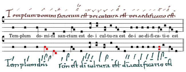 „do-mi-ni“ Die beiden Clives von MR werden auf syllabisch „fa-mi-do“ reduziert und damit Tempo aus der Antiphon genommen. Dass Selbe geschieht im Schlusscento 1TER clv (Verbreiterung) statt 1TER de3 (normales Tempo).