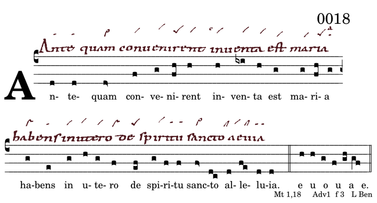 1MED typ auftaktig. Die Hauptaussage der Antiphon kommt auf das „sa“ zu liegen „invénta est“, Normalform.