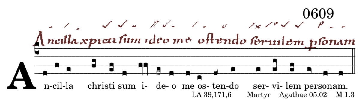H and MR make no statement on the question mi. The older diastematic manuscripts and Lc agree on the mi, although T2 and Lc avoid a second „mi“ and descend to „re“. The more recent diastematic manuscripts are „Do-Revision“ = „fa“. Zw, however, still has a „mi“ on the syllable „ser-vilem“