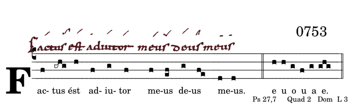 TrcPAR „Factus ést“, „Mein Gott ist wirklich Retter geworden“, nicht wie man üblicherweise diesen Text lesen würde „fáctus est“.