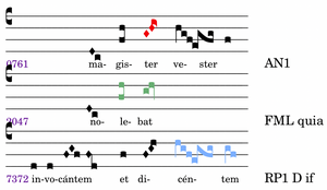 RP1 D f aus dem RP-Repertoire, Ende der 2.Periode, accentus finalis: „magister véster“.