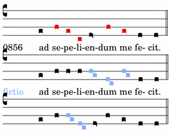 „unguéntum“ Die Akzentsilbe ist ein PorFlx urgens et liqueszens. Das 'urgens' ist in MR als initio debilis notiert (eingerundeter Anfang der Torculusgraphie), in Fo+Tol fehlt dieser 'Ton'.