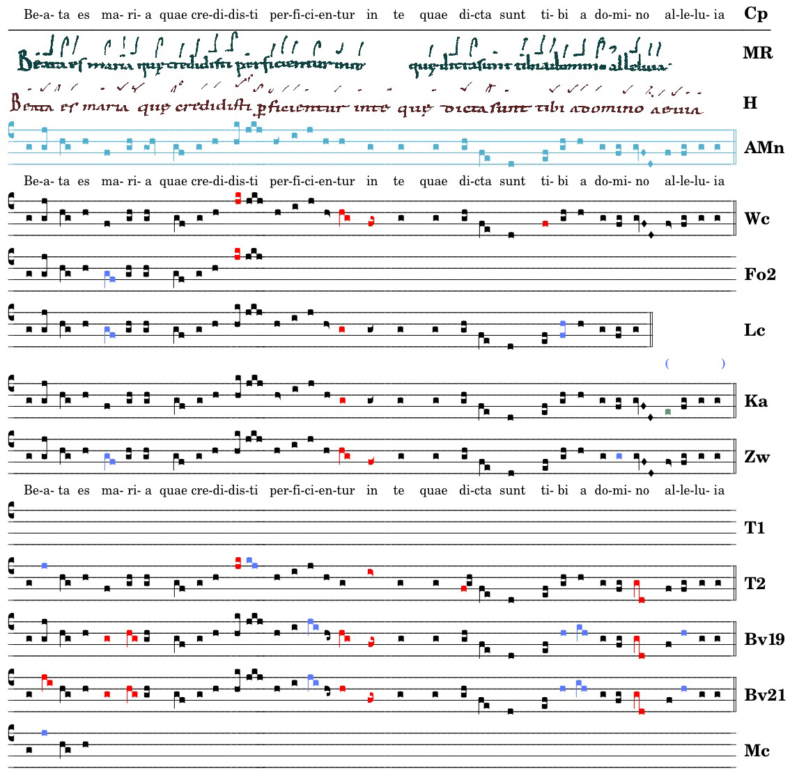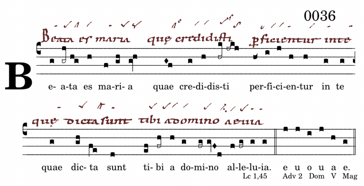 Beata es maria → quae credidisti / perficientur in te / quae dicta sunt / tibi a domino : alleluia.