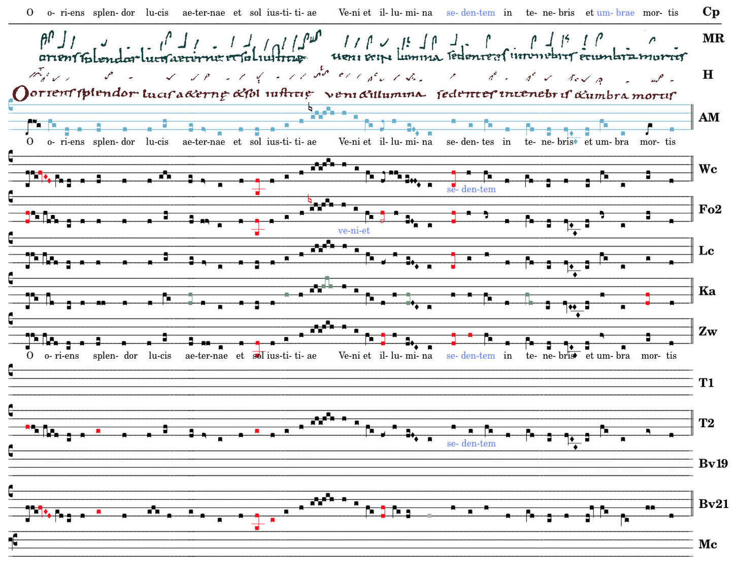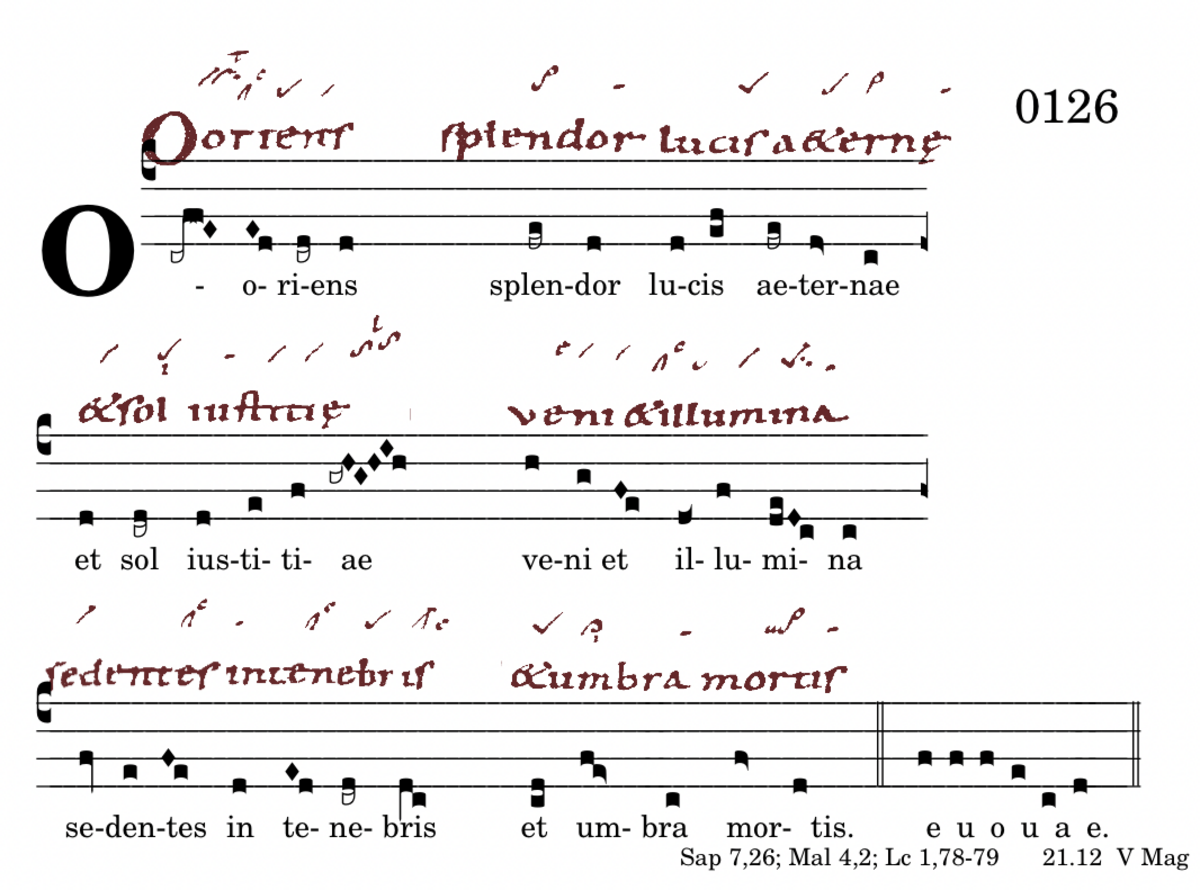 O oriens / splendor lucis aeternae / et sol iustitiae / veni et illumina / sedentes in tenebris / et umbra mortis.