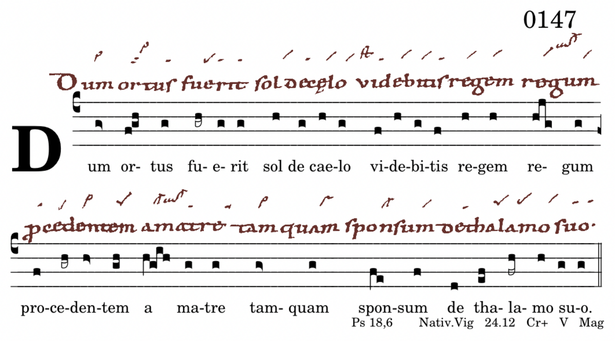 Dum ortus fuerit sol de caelo / videbitis regem regum / procedentem a matre / tamquam sponsum de thalamo suo.