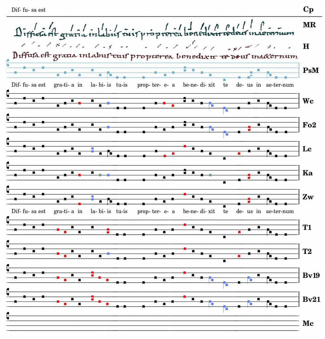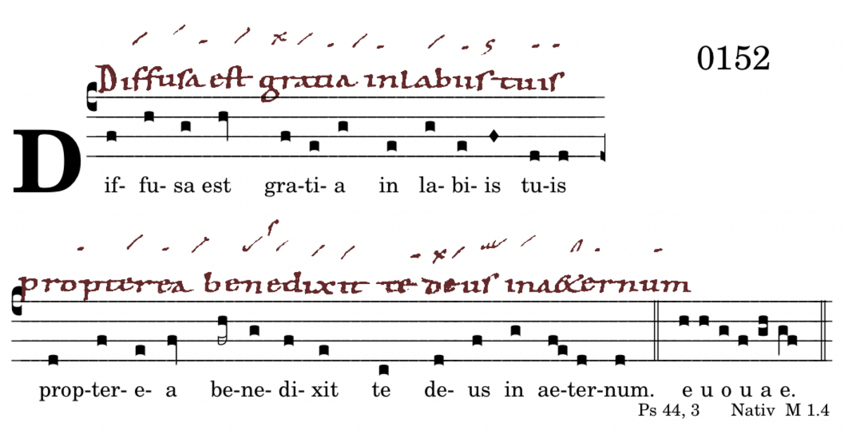 Diffusa est gratia / in labiis tuis / propterea benedixit te x←: deus in aeternum.