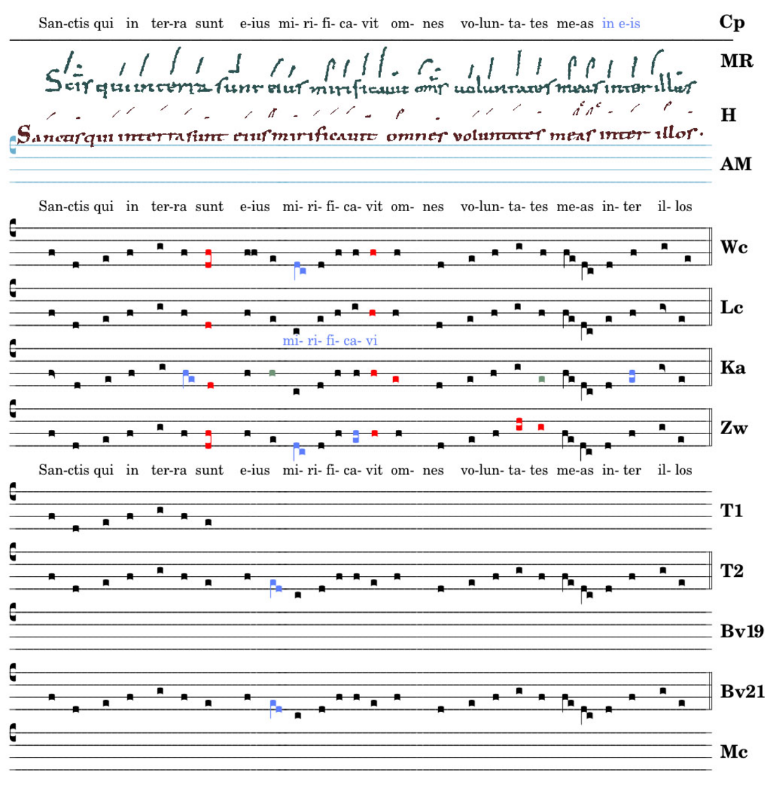 Sanctis qui in terra sunt / eius mirificavit / omnes voluntates / meas inter illos.