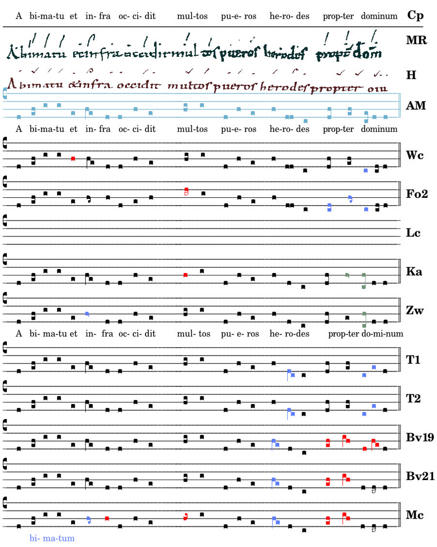A bimatu et infra / occidit multos / pueros herodes / propter dominum.