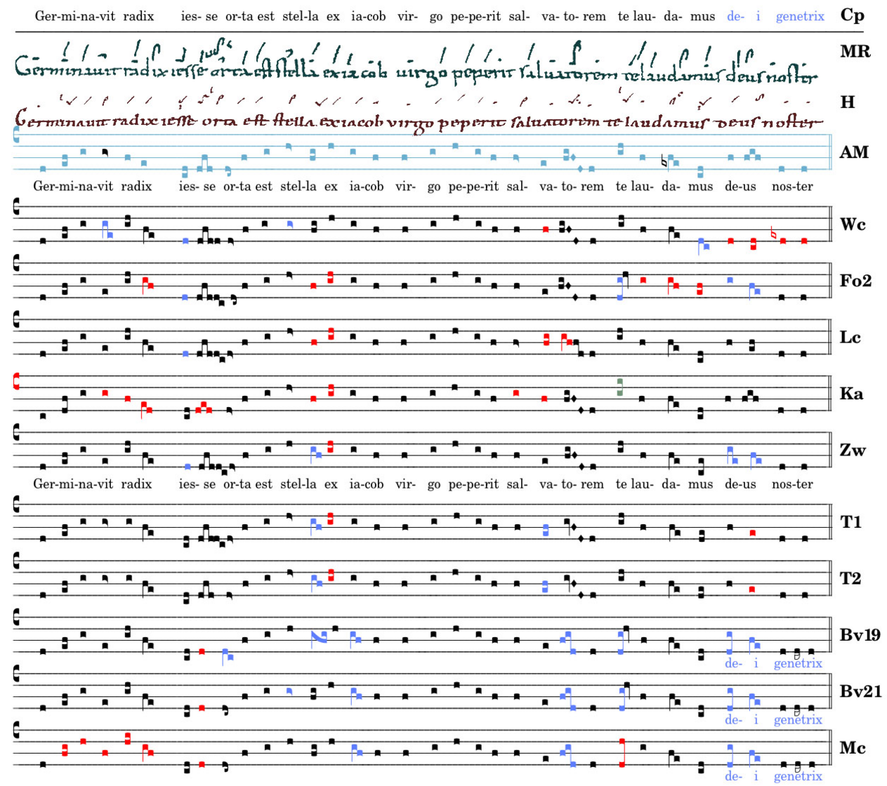 Germinavit radix iesse / orta est stella ex iacob / virgo peperit / salvatorem te lauda . mus deus noster.