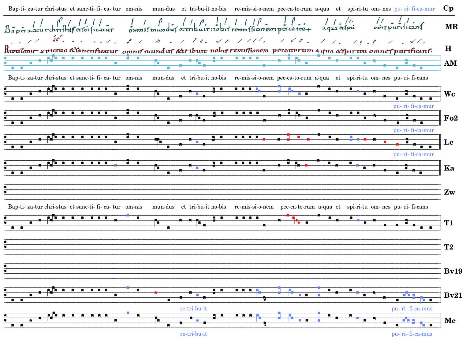 Baptizatur christus / et sanctificavit omnis mundus / et tribuit nobis remissionem peccatorum / aqua et spiritu / omnes purificans.
