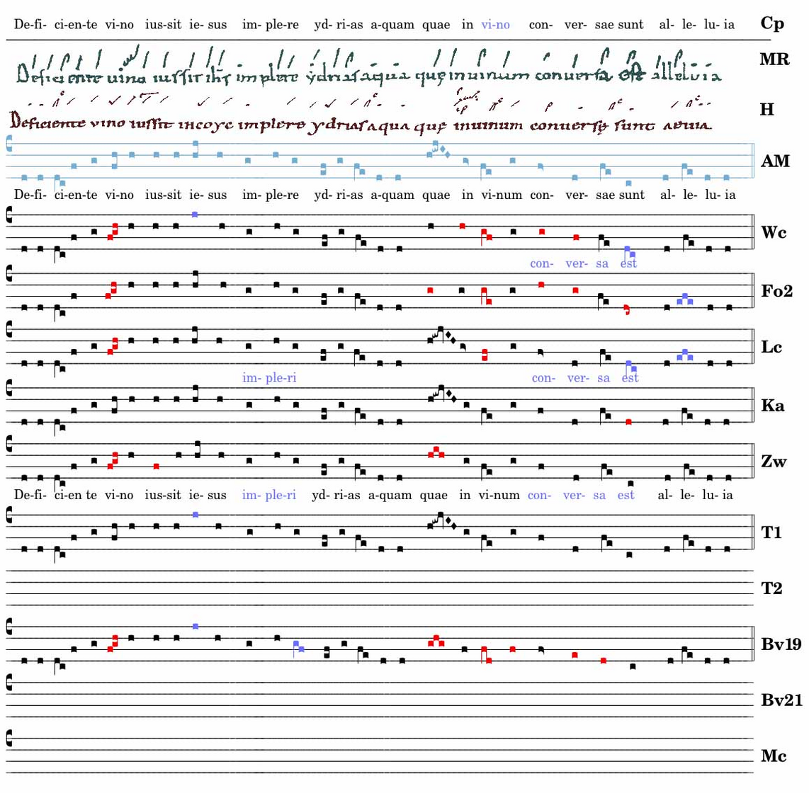 Deficiente vino / iussit iésus im ↔ plere ydrias aquam / quae in / vinum conver . sae sunt alleluia.