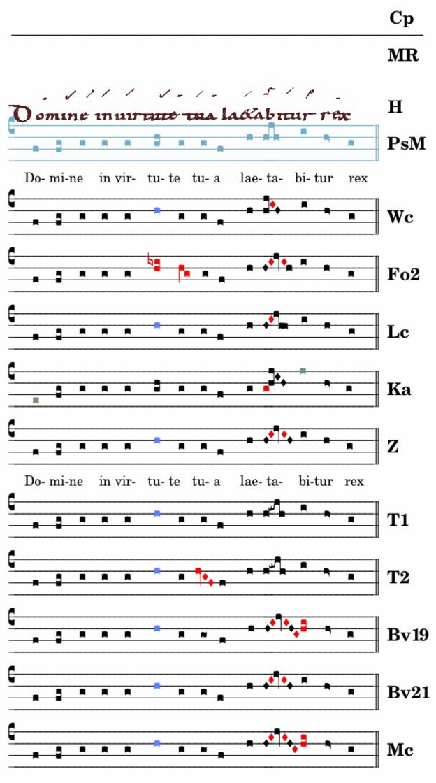 Die Variante – Durchgang „si la sol“ – enttont die Endsilbe „laetabitur“ bei gleichzeitig sorgfältigem Absprechen mittels Cephalicus; die letzte Silbe „réx“ ist Oxytonon.