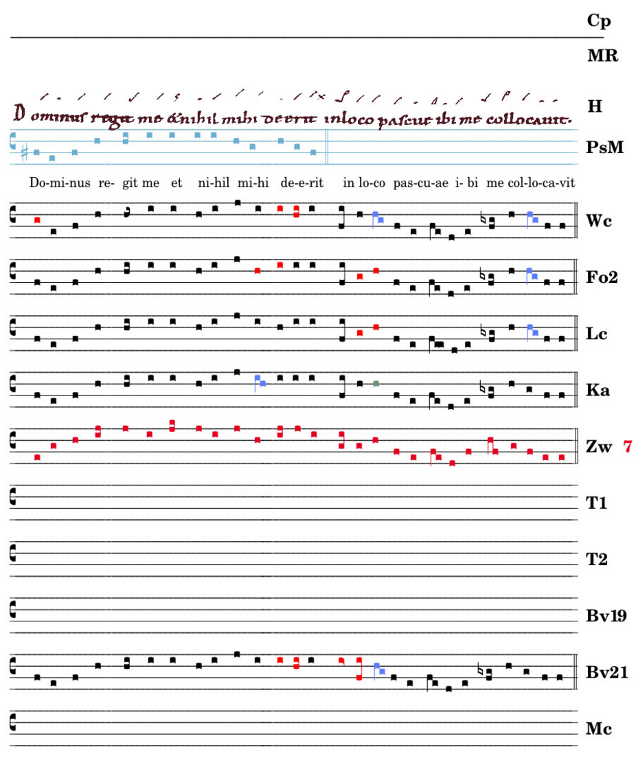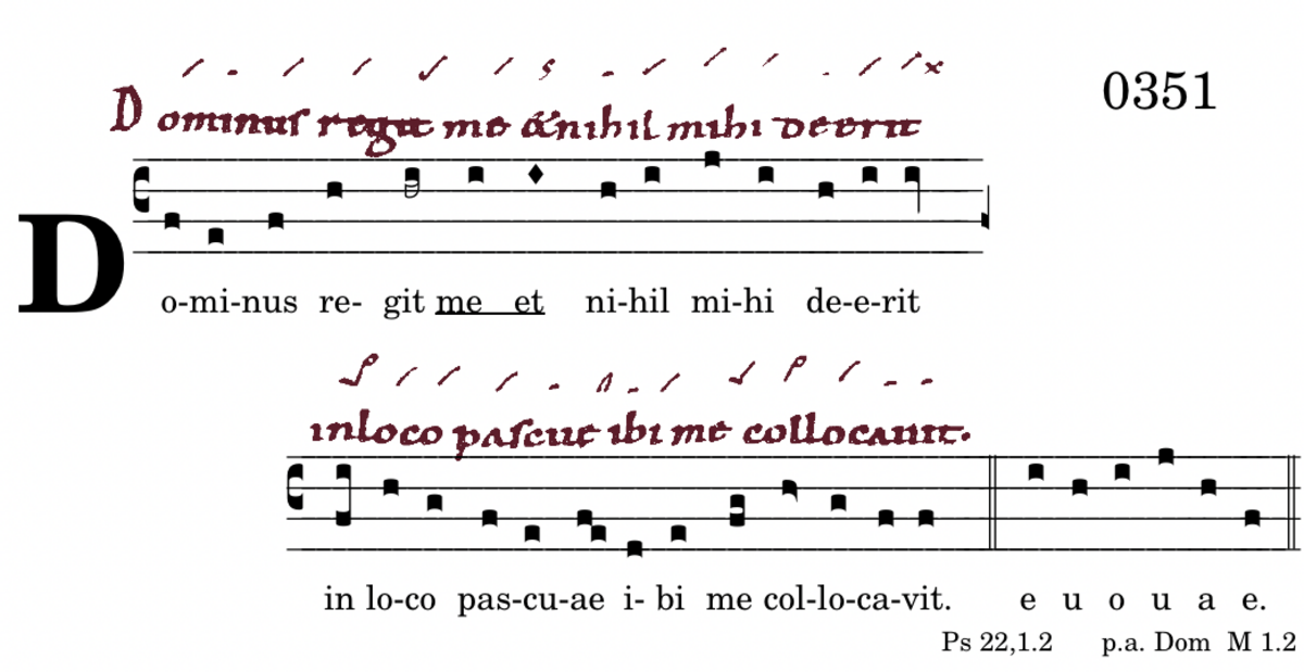 Dominus regit me / et nihil mihi deerit / in loco pascuae / ibi me collocavit.