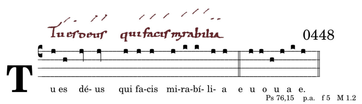 Zu diesem Typos siehe 0373. Das Wort „deus“ ist sowohl auf dem Akzent episemiert (betonend), als auch auf der Endsilbe (gliedernd).