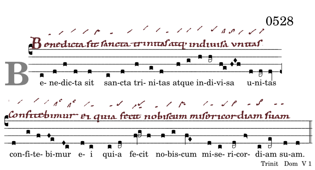 Benedicta sit / sancta trinitas / atque indivisa unitas / confitebimur ei / quia fecit nobiscum / misericordiam suam.