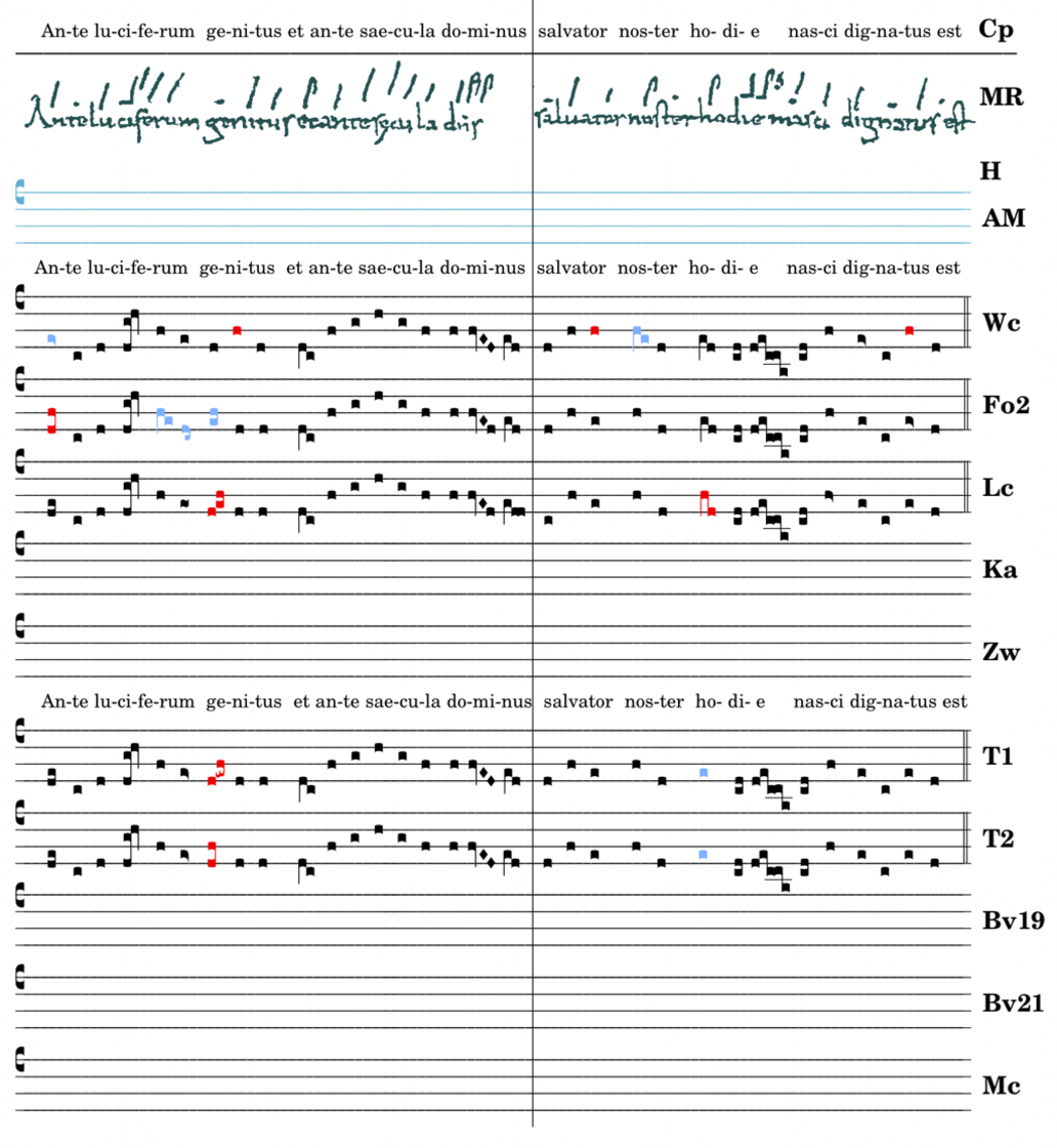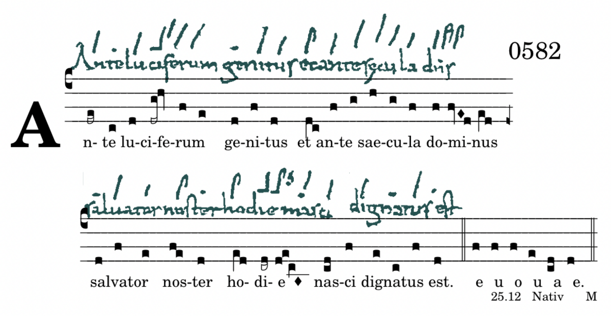 Ante luciferum genitus / et ante saecula dominus / salvator noster / hodie / nasci dignatus est.
