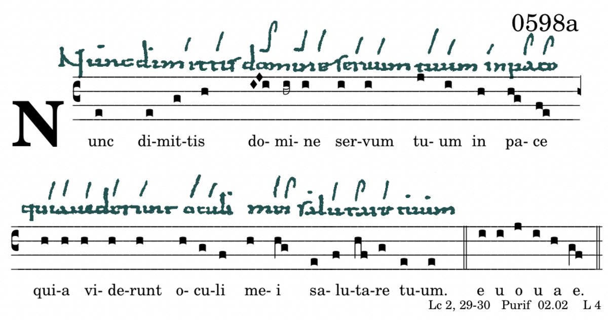 Nunc dimittis domine / servum tuum in pace / quia viderunt oculi mei / salutare tuum.