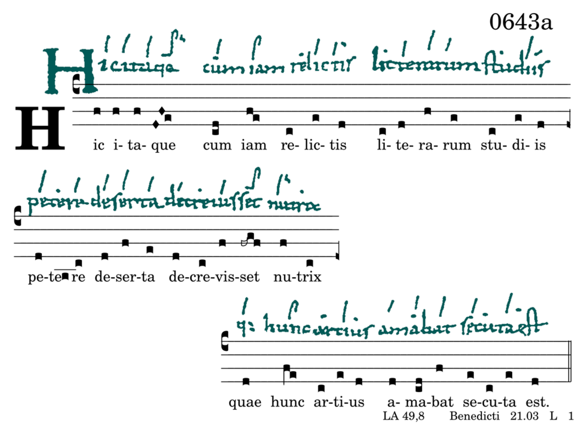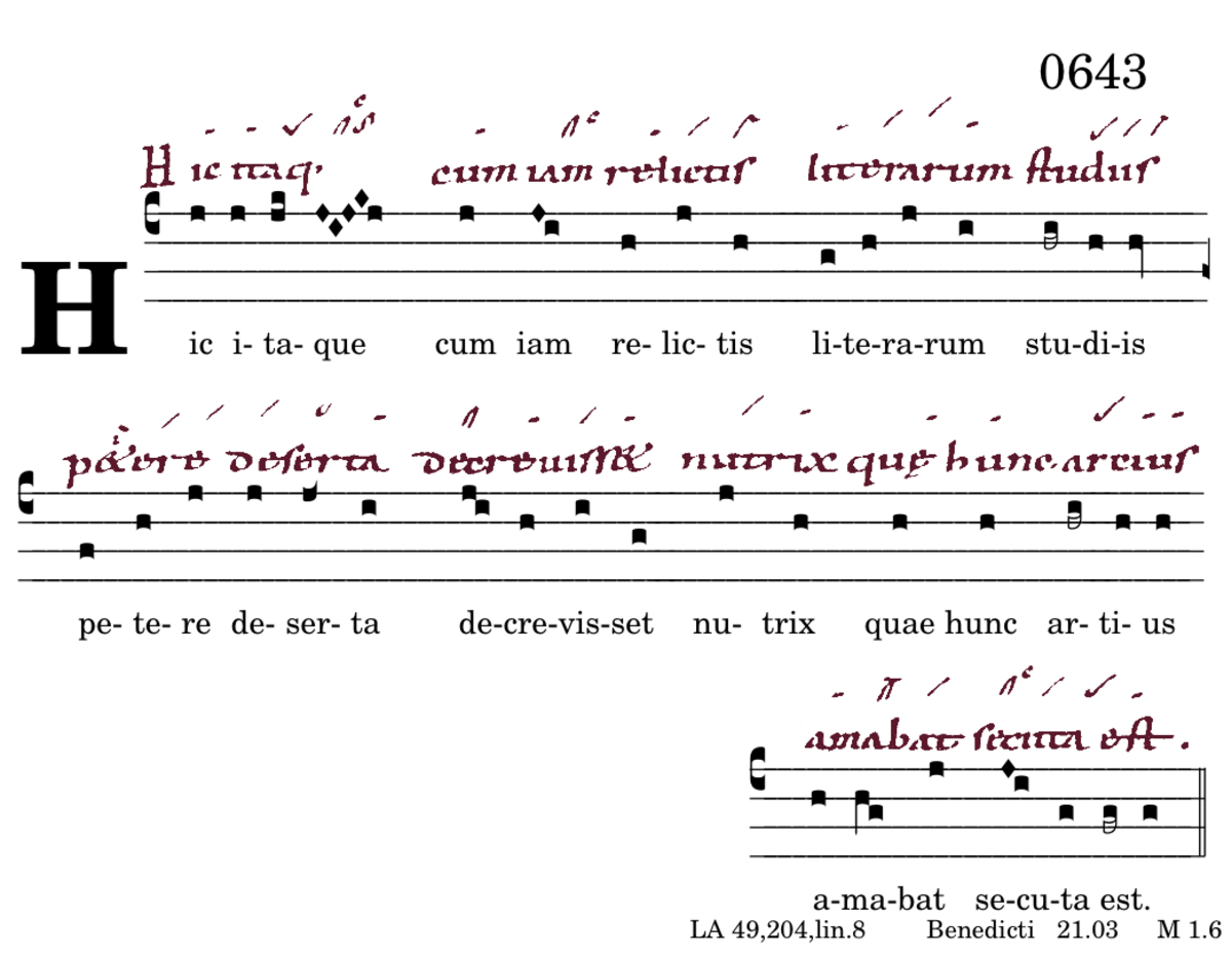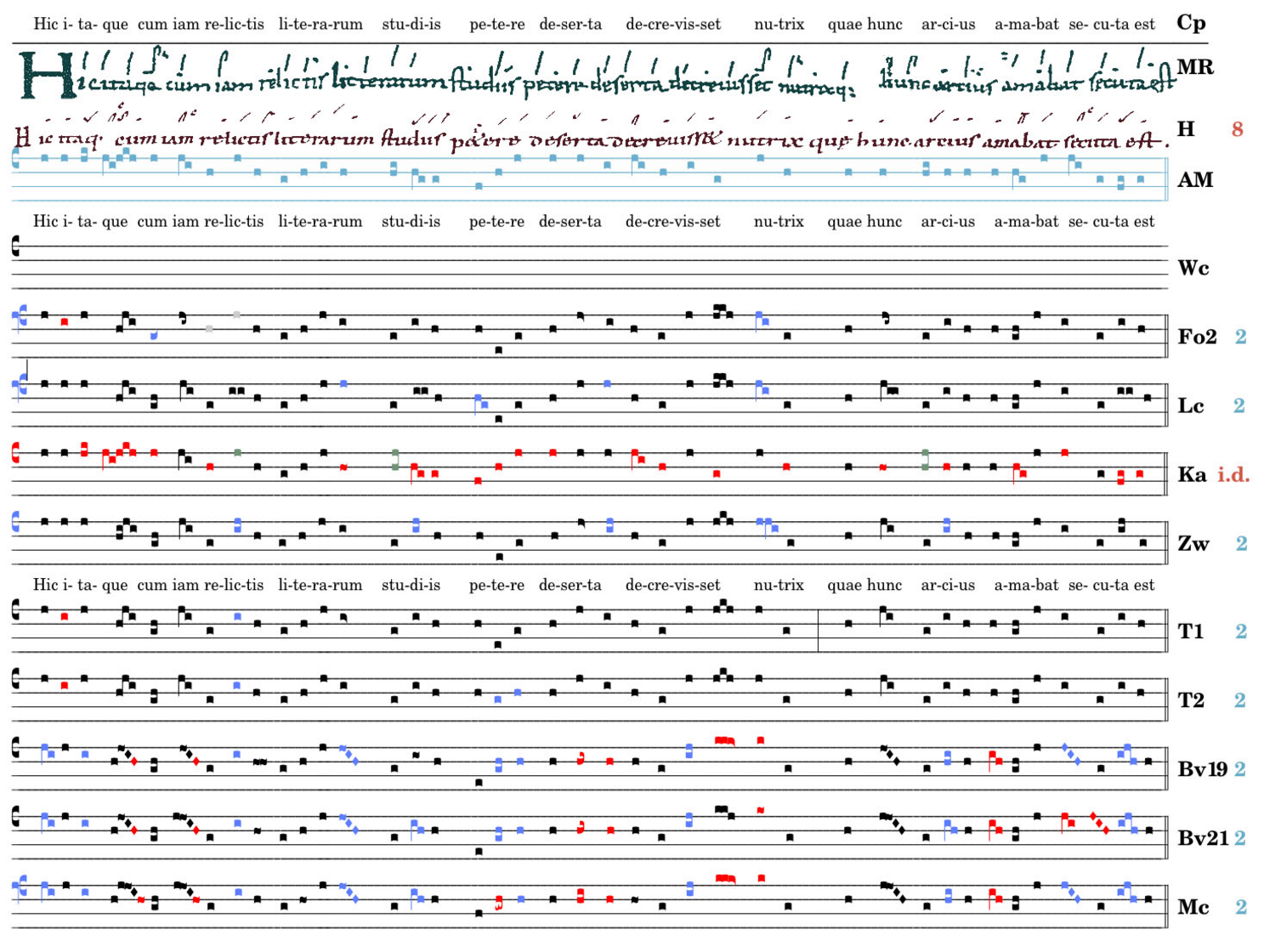 Nur H und Ka überliefern diese Antiphon im 8. Modus, alle anderen Handschriften im 2. Modus. Von der Rezitation do ausgehend wäre mit „relic-tis“ die Finalis la erreicht (analog fa – re).