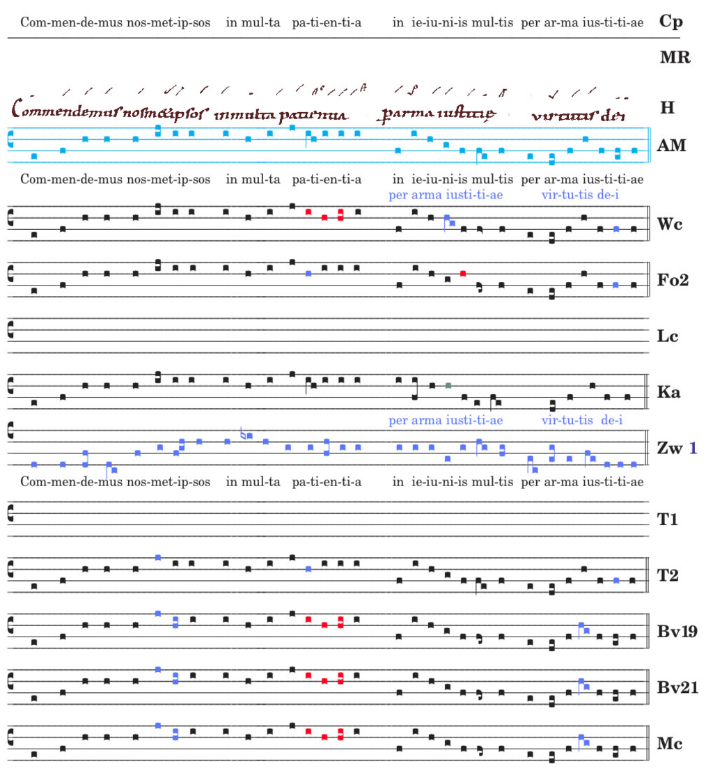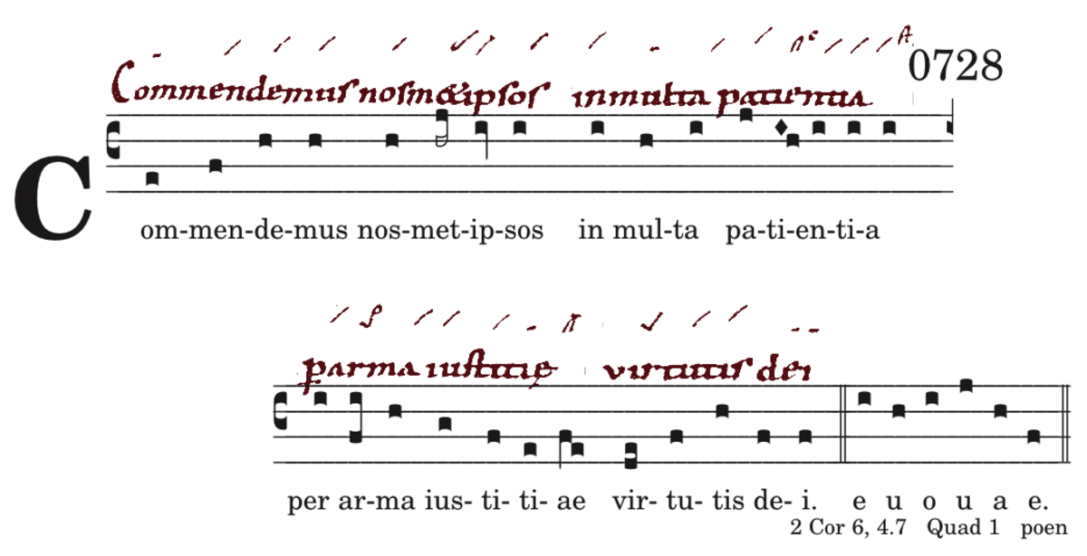 Commendemus nosmetipsos / in multa patientia / per arma iustitiae / virtutis dei.