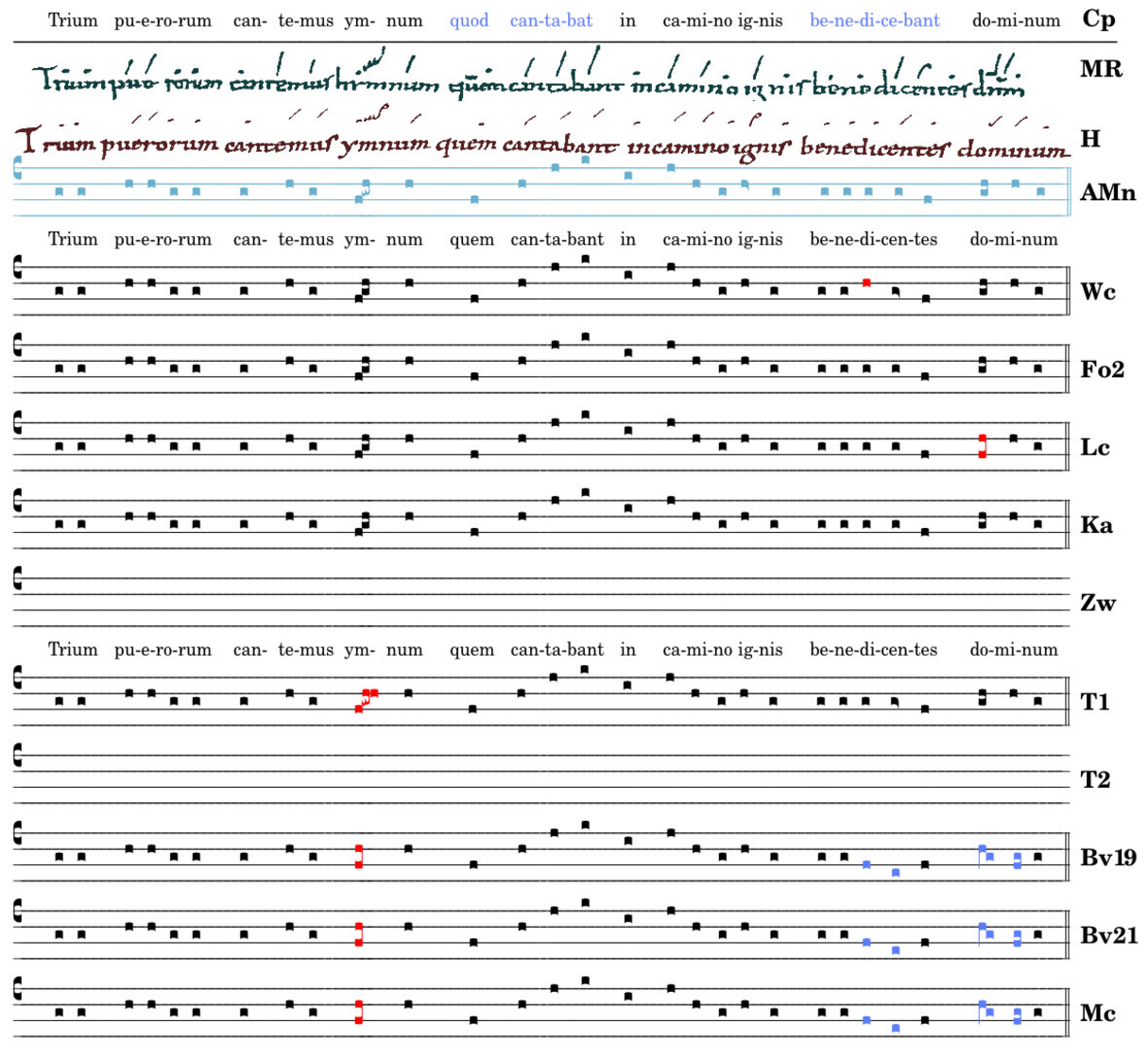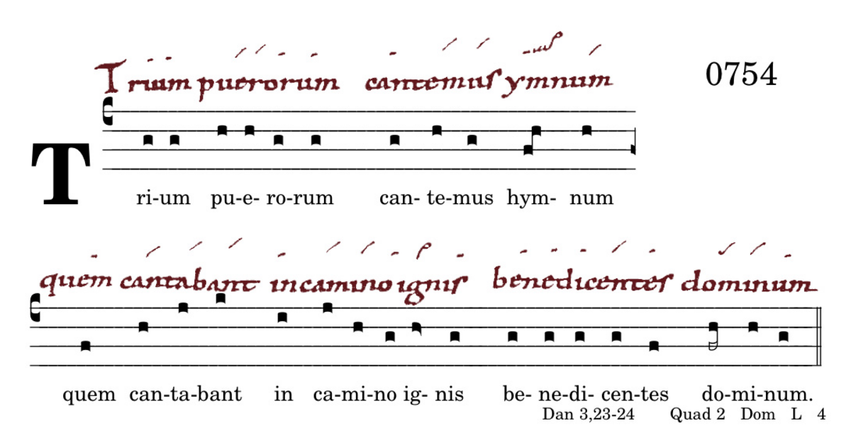 Trium puerorum / cantemus hymnum / quem cantabant / in camino ignis / benedicentes dominum.