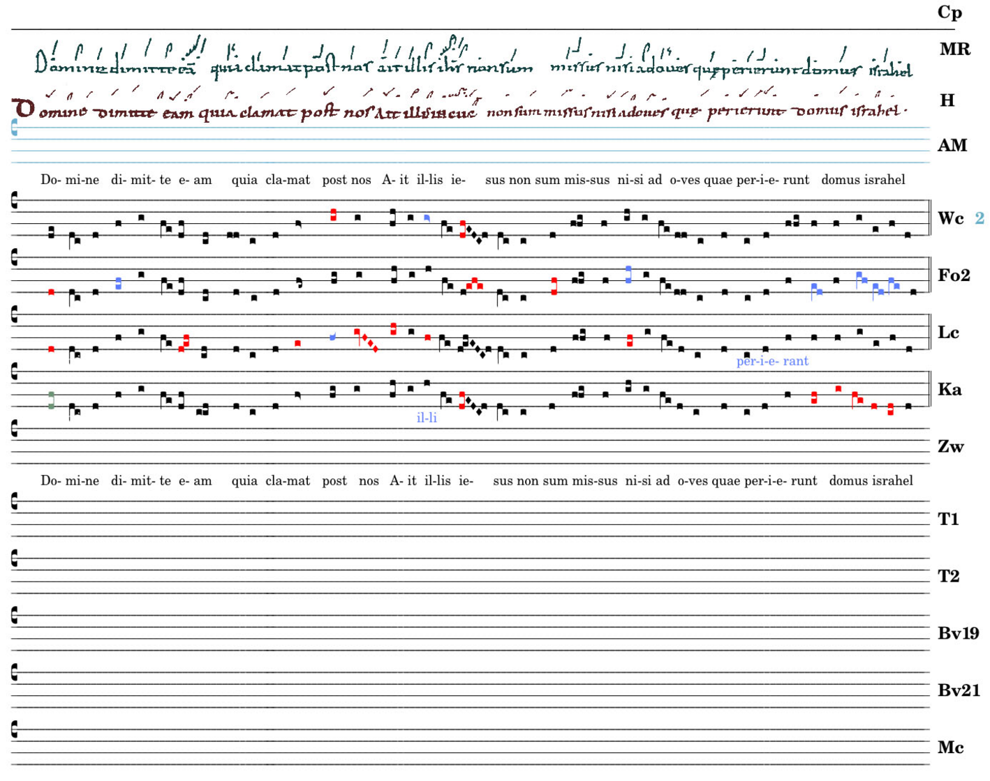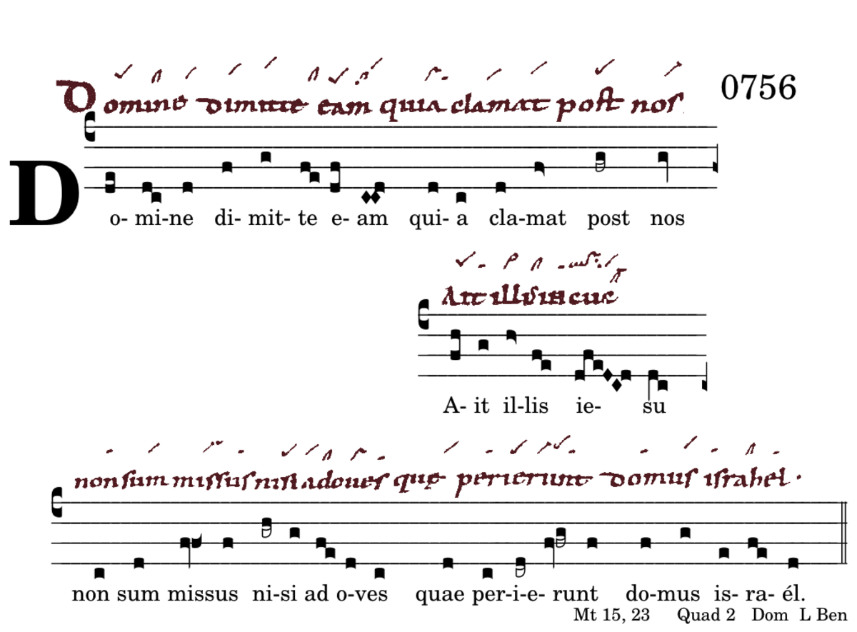 Domine dimitte eam / quia clamat post nos / Ait illis iesus / non sum missus / nisi ad oves / quae perierunt / domus israél.
