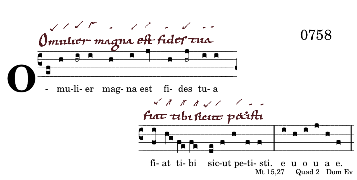O mulier / magna est fides tua / fiat tibi / sicut petisti.