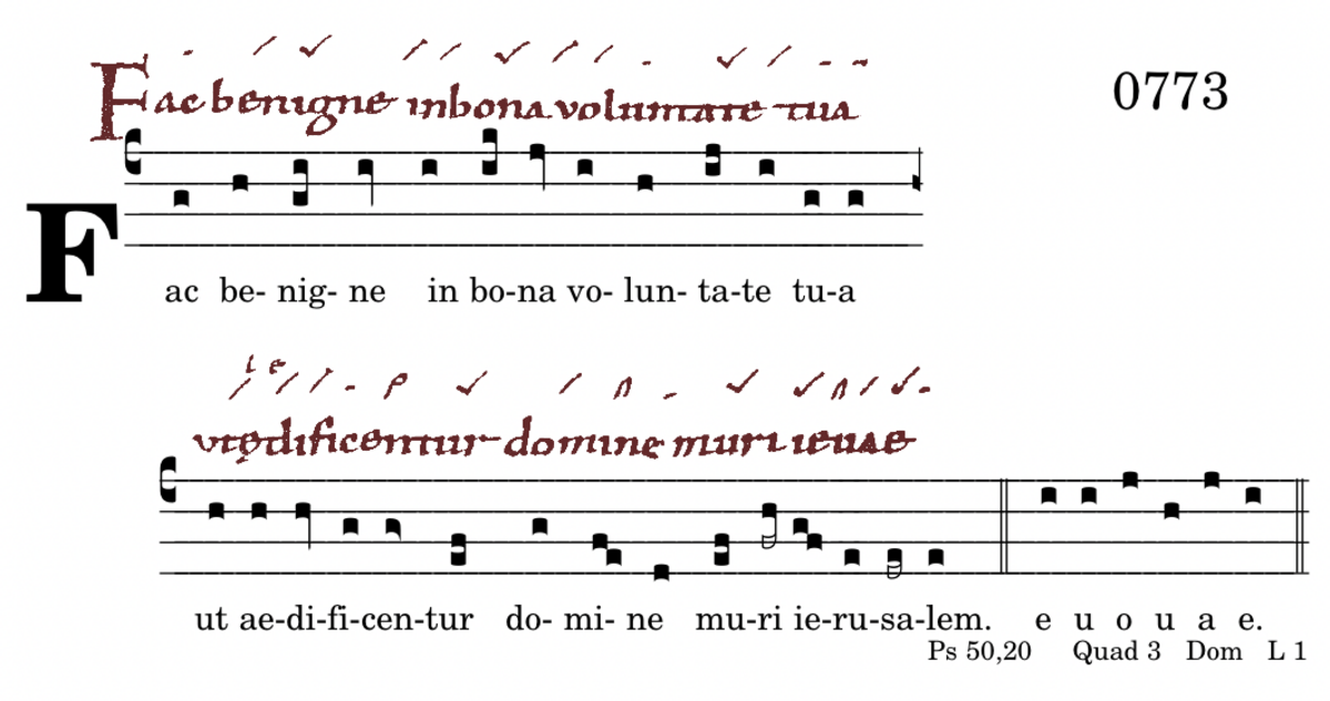 Fac benigne / in bona voluntate tua / ut aedificentur domine / muri ierusalem.