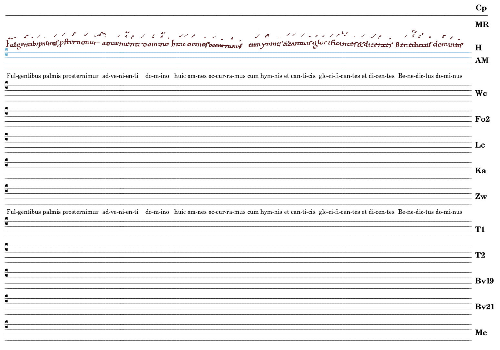 Fulgentibus palmis prosternimur advenienti domino huic omnes occurramus cum hymnis et canticis glorificantes et dicentes Benedictus dominus.