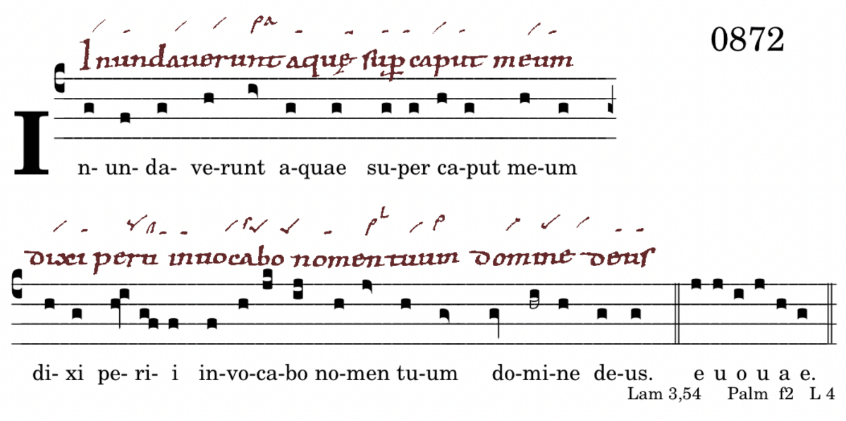 Inundaverunt aquae / super caput meum / dixi perii / invocabo ↔︎ nomen tuum / domine deus.