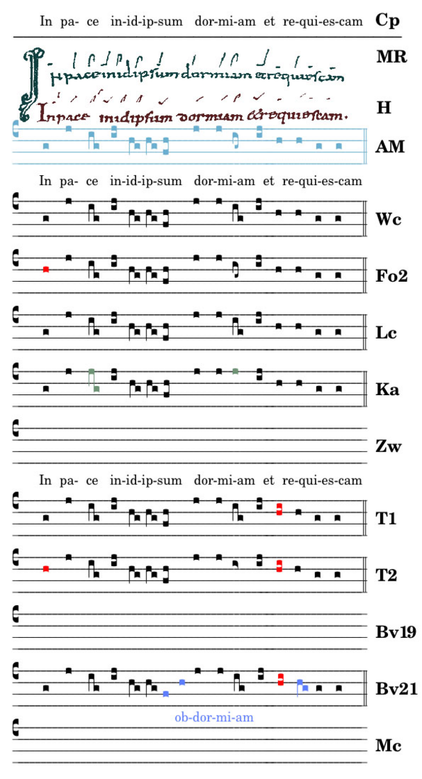 Das levare am Beginn ist melodisch gedacht, wie die Quellen bestätigen. Der Text „In pace inidipsum“ erlaubt keine martialische Quart. Die spannungslose Erzählterz ist besser angebracht.