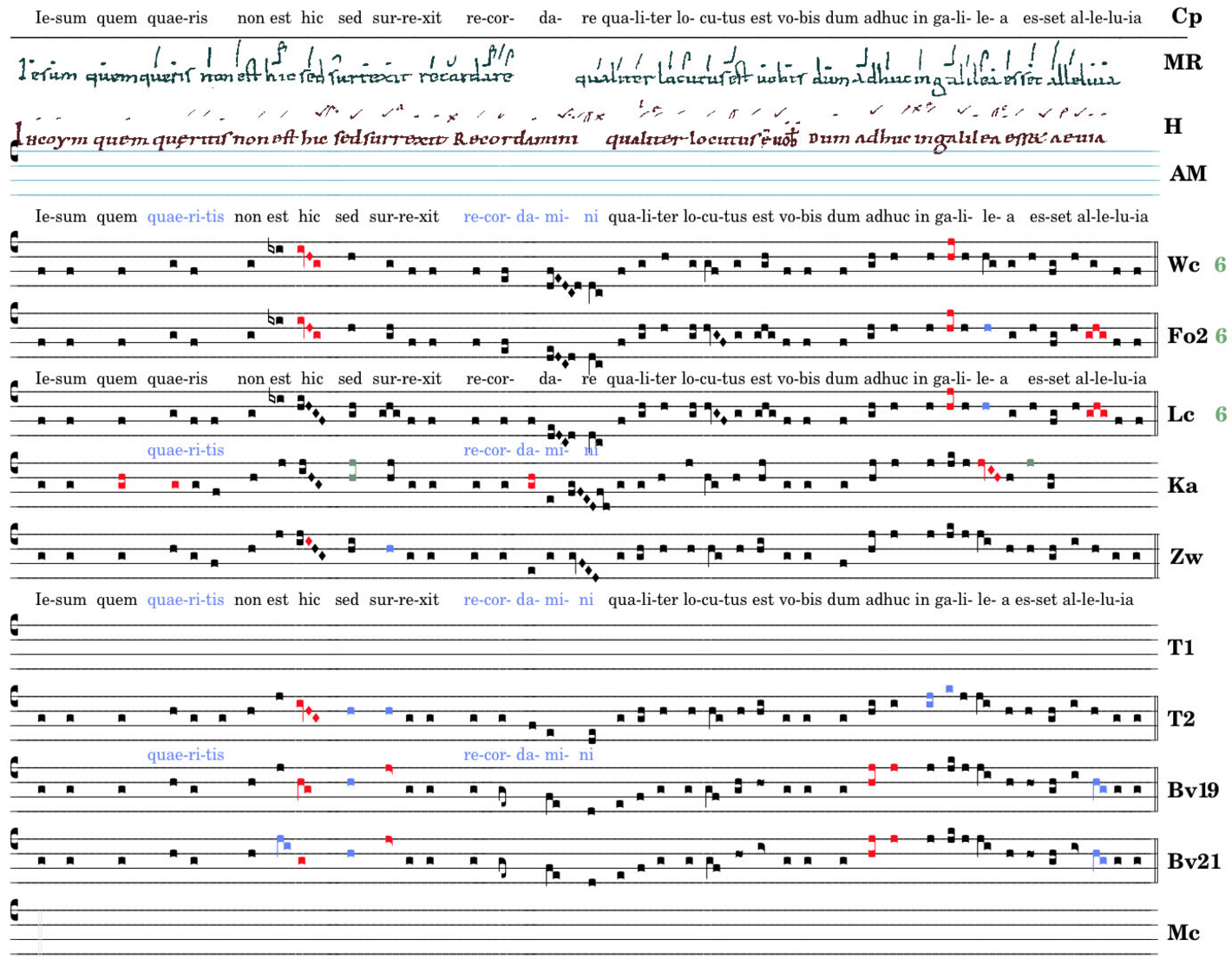 Iesum quem quaeritis : non est hic sed surrexit / recordamini qualiter locutus est vobis / dum adhuc in galilaea esset / alleluia.