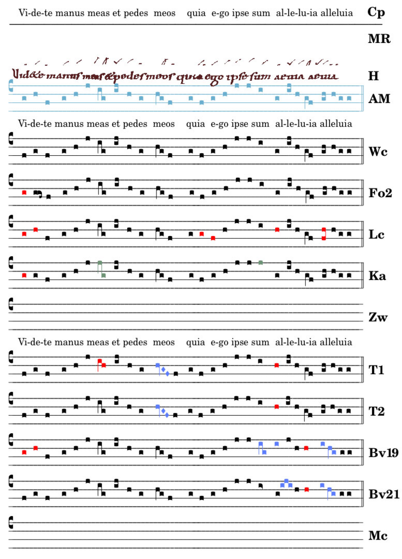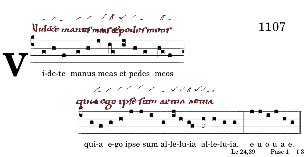 Videte manus meas / et pedes meos / quia ego ipse sum / alleluia alleluia.