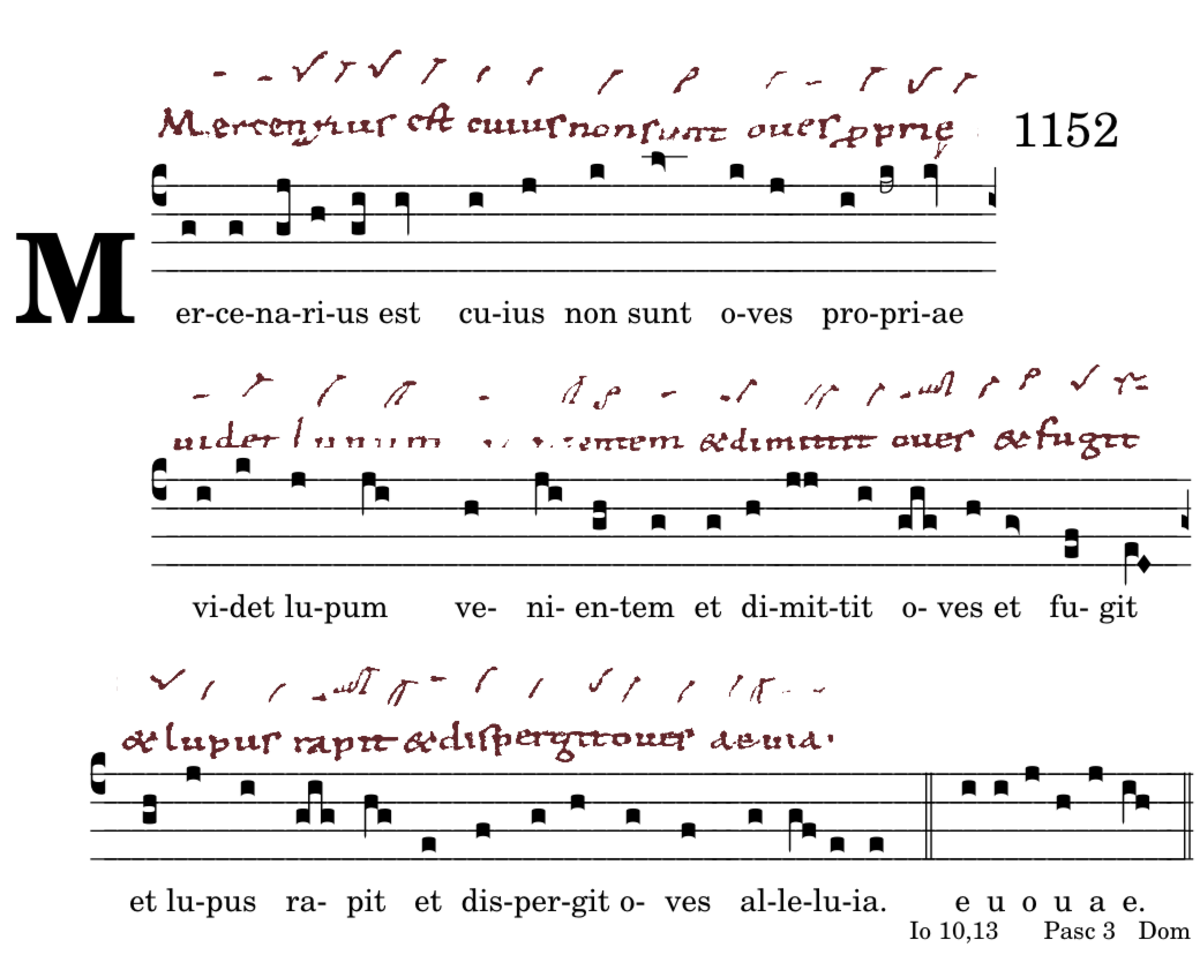 Mercenarius est / cuius non sunt oves propriae / videt lupum venientem / et dimittit oves / et fugit / et lupus rapit / et dispergit oves alleluia.