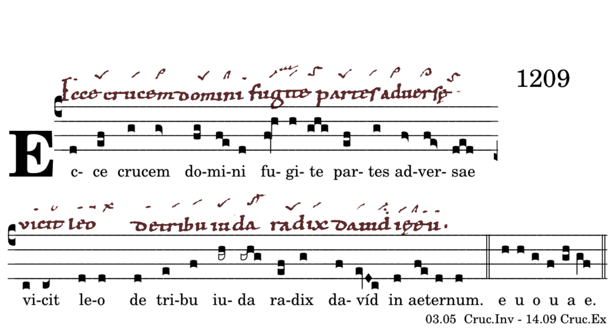 Ecce crucem domini / fugite partes adversae / vicit leo / de tribu iuda / radix david in aeternum.